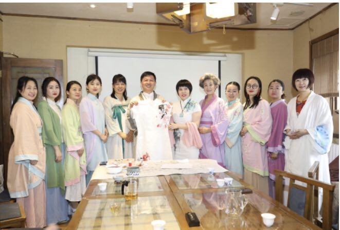 同时,各位老师及嘉宾大展才华。其中殷芳老师进行了服装手绘现场演示教学,极品易经第一人吴昊泽为大家讲解易学之《巧布风水》,艾馨觉真三宝香李庭明进行现场香道传承讲演,嘉宾还进行了曼西良诗朗诵,最后的抽奖环节和汉服展示更是将活动推向了高潮。
